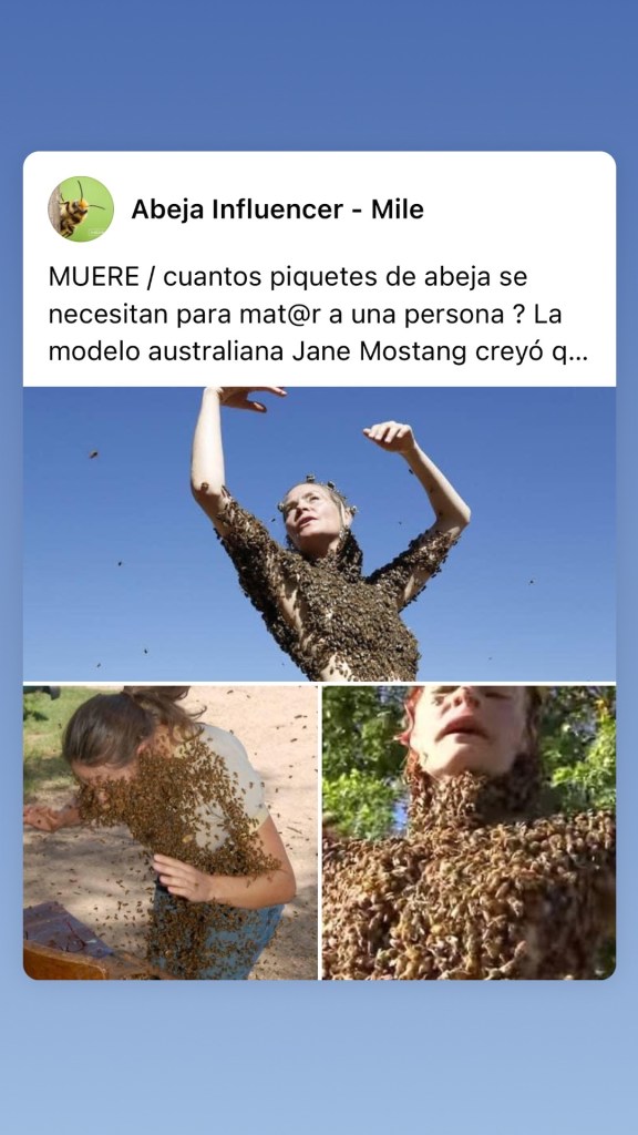 MUERE / cuantos piquetes de abeja se necesitan para mat@r a una persona ? La modelo australiana Jane Mostang creyó que no era de tomarse en serio su arte… leer más